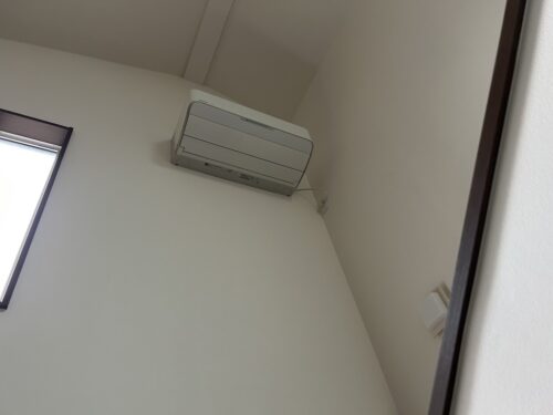 香川県高松市や丸亀市を中心に、地域密着で電気工事を承っている黒川電装です。今回は、戸建て住宅のお客様よりご依頼いただいたエアコン工事の様子を詳しくご紹介します。 瀬戸内式の温暖な気候が続く香川県では、夏場の厳しい暑さだけでなく、冬場の冷え込み対策としてもエアコンは欠かせない存在です。特に吹き抜けのあるお住まいでは、エアコンの能力不足や不調が家全体の快適性に直結します。 今回は高所に設置されたエアコンの交換という、技術と安全管理が求められる施工事例を解説いたします。