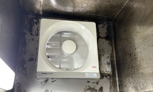 古い機器を撤去し、周囲の清掃を行った上で、最新の業務用換気扇へと交換いたしました。
